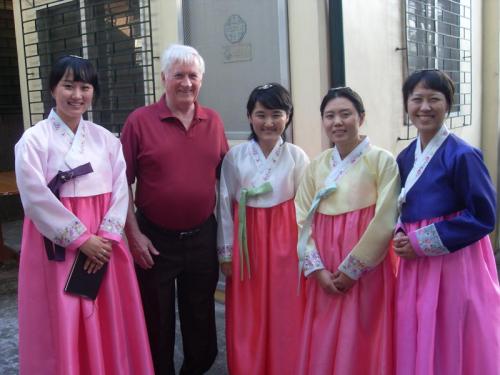 Philippines, new Korean LMs (K13) with Fr Colm McKeating; L to R Noh Hye In, Kim Sun Hee, Park Juri and Shin Hyun Jeong