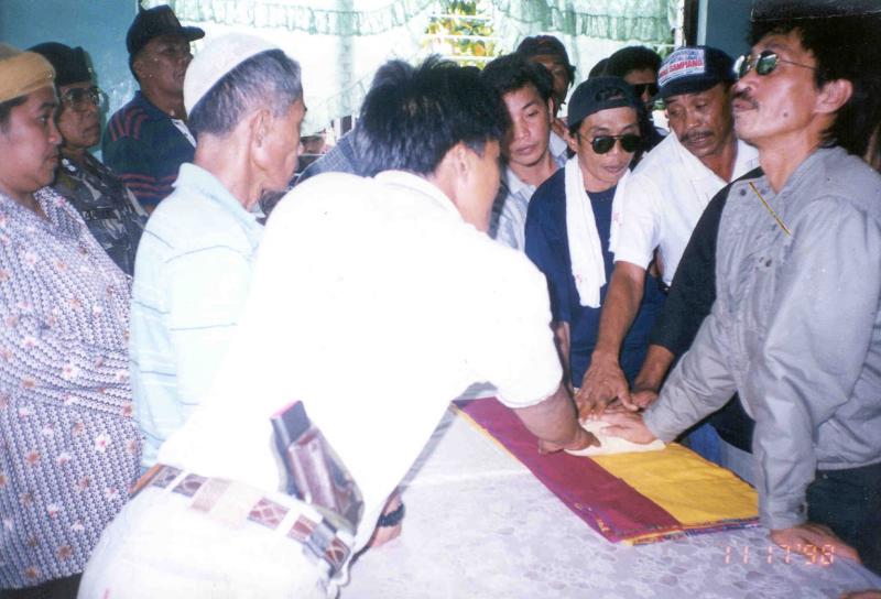The Quran was unveiled. Erning and Igid’s hands were placed on it and with there respective followers swore to abide by the terms of agreement. Then both swore to abide by the terms of agreement. Then both were brought to embrace one another-a noble but alas, premature gesture. They could not even look at one another. But the papers nevertheless were signed, photos were taken, and speeches were made. What a wonderful day. It was such a privilege to be part of something so good: