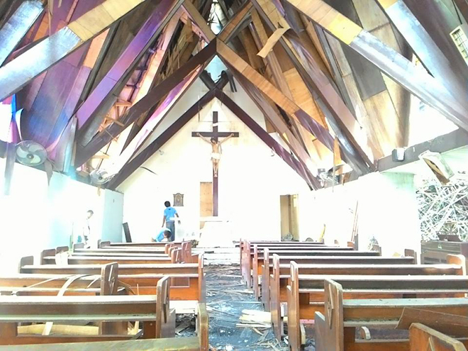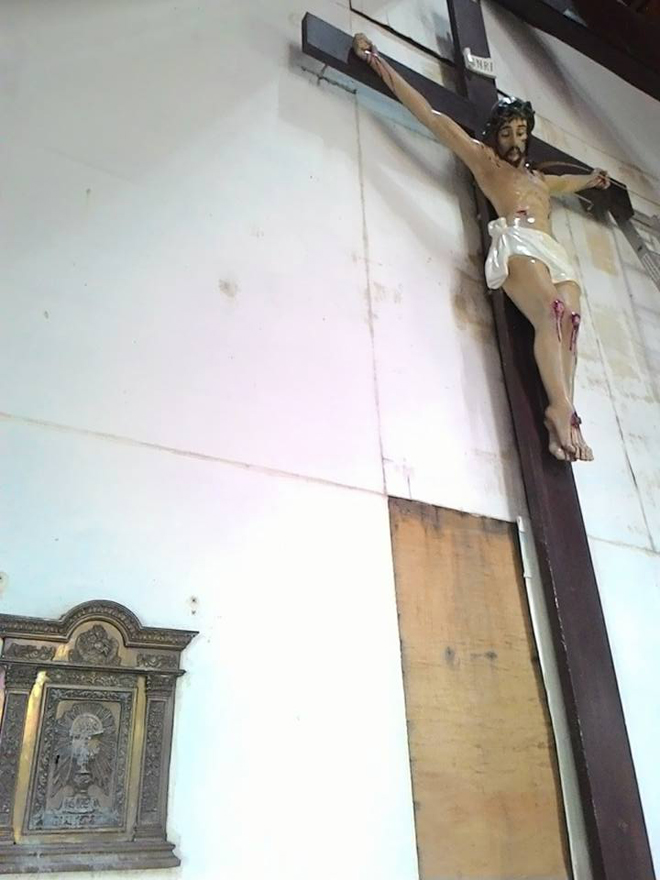 In the early afternoon with the help of Dexter A. Villanueva, Campus Organizations Coordinator, I got permission to enter the campus. We discovered that the statues in the chapel and the processional cross had been saved. They were saved including the processional cross. Nabuhayan ako ng loob na maisave ang Blessed Sacrament sa Chapel.