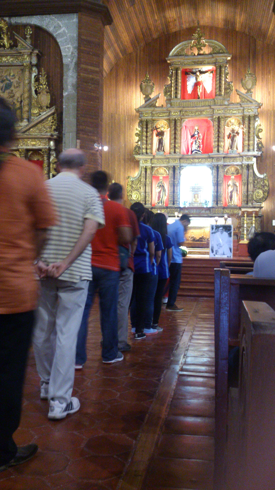 ‘No wonder he was always looking towards the altar’, said Miss Dominga Bayocot who had witnessed as an eight-year-old the man tied to one of the pillars in St James the Apostle Church, Paete, Laguna, after realizing that he was a priest. She was speaking in Tagalog but I noticed the interpreter missed this line and didn’t translate it for the pilgrims who were listening intently to the accounts of two witnesses – the other was Mrs Aurelia Cadapan – to events in the church in July 1943. It was an important line, I thought. They spoke to us after a lunch hosted by the parishioners at Lunal Paradiso Resort in an off-road garden setting.