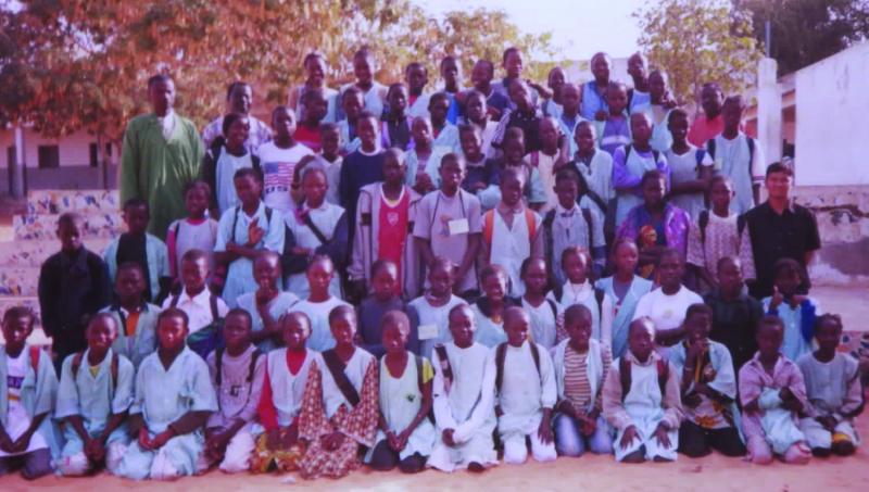The author (extreme right, third row) poses with his students and fellow teachers in St Abraham School, Guédiawayé, Senegal