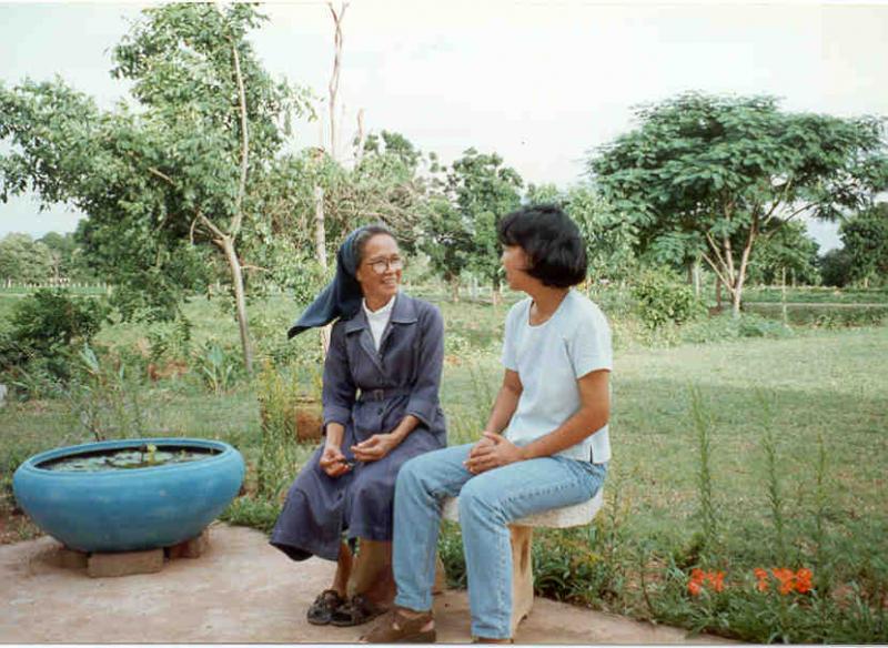 At present Sr. Mercedes is in Chaiyaphum helping Fr. Phil in his AIDS program. She together with the other sisters does house-to-house visitation, encouraging people to look after AIDS victims in their own homes and then helping them to do so with advice and support. They talk and listen to their stories. The patients appreciate the time they spend with them for their presence only shows that people still care.