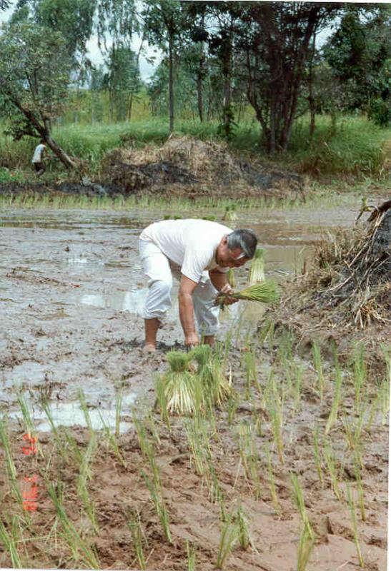 Tapioka is the main crop in the village where he was assigned. The people were in the hands of loan sharks and could not escape from them. He got involved in farming in an attempt to help the people out of this quagmire. With the help of foreign aid, he bought a piece of land and started farming projects – orchard, ricefield, sugarcane field, spices and herbs, fishpond. These projects alleviated the lives of the people and helped them to escape from the burden of debt.