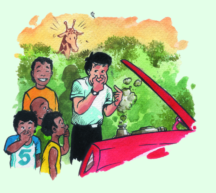 As we were repairing our radiator that kept overheating, many curious villagers crowded around peering at it with grim intensity and remarking, ‘Ah-hah...all holes?’ ‘Where did they get the idea of making holes in the radiator?’ I asked, but no one answered. ‘Try closing your nostrils and don’t let air come in and see what happens,’ I continued with everyone shrieking and laughing. Then I concluded, ‘So, as nostrils are to the nose, holes are to the radiator.’