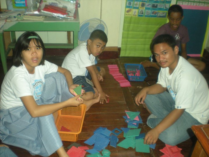 The first is for school-based children who are capable of attending classes at the center from Monday to Friday. We divide them into five groups, using color-coding according to their skills and needs. The Blue Class is composed of children with autism who cannot sit still during class and so need the full support of a teacher. The Yellow Class is composed of children with autism but who can follow some verbal instructions, do simple writing as well as art works and have developing motor skills. The Pink Class is for children with different types of disabilities but who are focused and able to write their names and copy words. We are preparing them to cope with mainstreaming in a regular school. The Green Class is also of children with mixed disabilities who are trained to cook our daily snacks for the children of Hangop. The Violet Class learn some functional academic subjects such as Simple Mathematics and Values Education. They are also trained in skills such as planting and caring for flowers and trees as their livelihood projects.