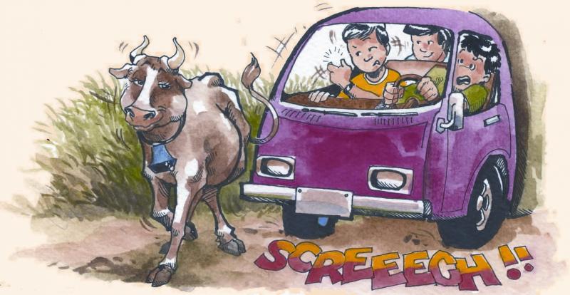 We were on our way to Kalibo, capital of Aklan. Mr Louis, one of the benefactors of the Pink Sisters, was seated next to the driver. All of a sudden a cow crossed the road. Luckily, the driver was able to step on the brake right away. I was amused when I heard Mr Louis say, ‘That cow doesn’t know how to blow her horns.’