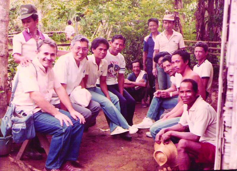A young Bishop Rosales, seated, second from left, with Fr Bernard Jagueneau of the Little Brothers of Jesus. Far left, another close friend of Father Rufus
