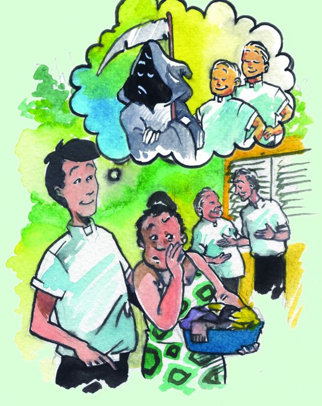 I was with Fr Gregorio Pizarro SVD and Fr Adriano Ocariza, SVD, both blessed with long life, at our SVD Retreat House in Sunnyside, Baguio City. Observing them, the laundry woman whispered to me, ‘Why do you think they are blessed with long life?’ I answered, ‘Maybe because Death said, “Why take them? They are not afraid of me anyway!”’
