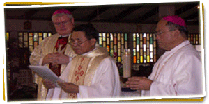 Fr Raymundo T. Sabio MSC worked for many years in South Korea where he was a chaplain in these fields: Apostleship of the Sea; the welfare of foreign workers; Incheon International Airport. His brother, Father Generoso, ‘Gene,' is now based in the USA (San Bernardino California) after having worked for six years as Third Assistant General of the MSCs in Rome. Father Gene was unable to go to the Marshall Islands for his brother's installation but their sister, Sr Fidelis PBVM, based in Scala Retreat House, Bacolod City, represented the family. Father Ray's article about her vocation story, ‘Ichthys' as a Way to the Lord, appeared in the March-April 2007 issue of Misyon.