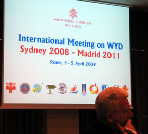 Being based in Italy I was asked to represent the Teresian Association at the first international meeting organized by the Pontifical Council for the Laity (PCL) in preparation for the Madrid World Youth Day (WYD) in 2011, held in Rome from April 3 to 5. Representatives from 70 countries and 30 international Catholic communities, associations and movements, and the organizing committees of Sydney and Madrid came to take part in the meeting to assess the WYD in Sydney and to start planning for Madrid...