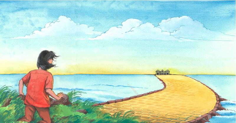 With slow and agonizing steps I set out again but to the left. I walked on and on until, with my back bent and my head drooping from tiredness, I happened to look up and saw a Sister of St. Paul standing on high ground overlooking the river. It was Sr. Raphael, and I had known her when I was a child. I was so happy and excited. Of course, she knew! “There is the Church!” I walked up towards her, then looking at the direction of her pointed finger I saw a vast sea, and on a far distant island the white outline of a church. My heart sank! The sight of the sea and the distance I still had to travel took all my courage away, and with it went my strength and determination to continue my journey.