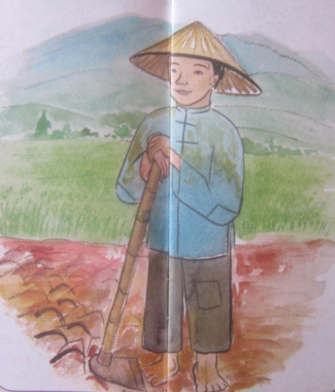 I saw him in the ricefield. He stopped working as I approached and leaned on his hoe. The sweat of a hot day under the South China sun glistened on his brow. His coolie suit of blue denim was covered with dust, and the end of his frayed trousers disclosed a clumsy pair of stub-toed bare feet. He was a big boy for his age, but there was no comeliness in him twice. He was a clodhopper.
