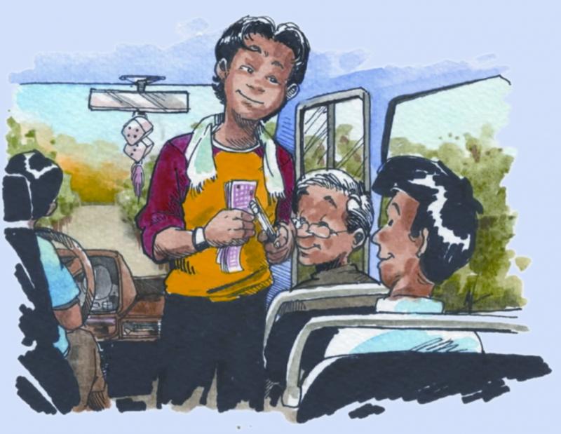 I took the Dagupan bus going to Manila. The conductor asked the old man sitting  in front of me, ‘Saan po?’ ‘Tarlac, Senior Citizen,’the old man replied.  The conductor then turned to me and asked, ‘Kayo po?’ ‘Manila, Junior Citizen,’  I answered, stressing ‘junior’Smiling, he said in Ilocano, ‘Adayo pa,’  ‘You’ve a long way to go yet!’No discount for me?