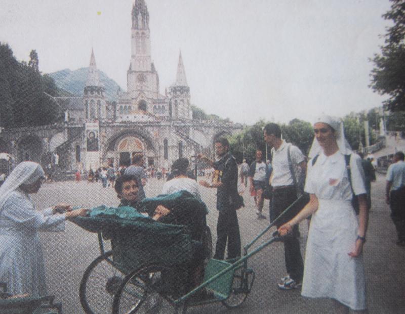 Sr. Martina Machacon has been on mission in Iran, Lebanon and Rwanda. She had to flee from Rwanda during the terrible massacres, now she is in their mother house in Lucca, Italy. Recently she volunteered to assist the sick pilgrims to Lourdes.