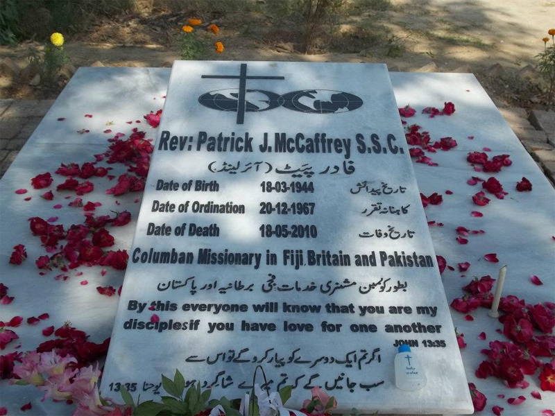Fr Pat McCaffrey, from County Fermanagh, Northern Ireland, died suddenly in Pakistan on 18 May 2010. He had served first as a Columban missionary in Fiji before joining the pioneering group of Columbans that went to Pakistan in 1979. Later he spent some years in Britain, based in Bradford, where there are many people of Pakistani origin. He was involved with Muslims there and celebrated Mass regularly with Catholic Pakistanis. He returned to Fiji but was to spend his late years in Pakistan. Here his niece writes about her visit, with her brother Niall. This article was published in The Far East, the Columban magazine in Australia and New Zealand.
