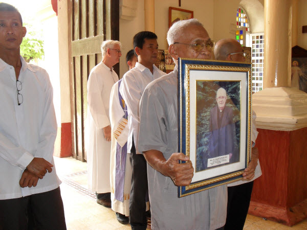 It was obvious that a lot of preparation had been made for the Mass. There was a big tarpaulin in front of the altar with a photo of Father Joe and some details of his life. Mr Primitivo Rico, the first teacher hired by Father Joe in 1954, carried a large, framed photo of him in the Entrance Procession. The church was full. The Mass was a joyful Mass for the Dead, even though it was a Sunday, a celebration of Father Joe's long life and a prayer that he now enjoy eternal rest.