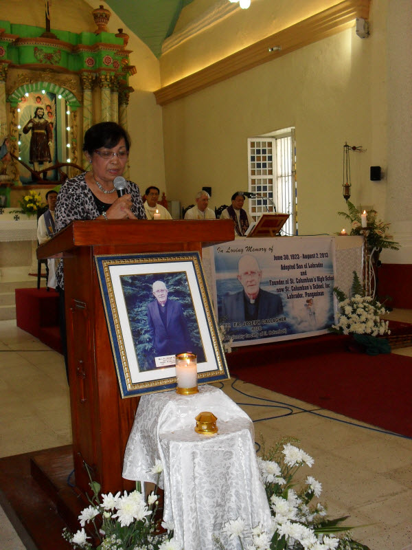 In his homily, Bishop Peralta explained that he was not yet Bishop of Alaminos when Father Joe left Labrador, but that he had met him once. He had made a special trip from Urdaneta Diocese, where he was the Vicar General, to meet him. He had heard what a wonderful priest he was. Father Joe made a lasting impression on him with his warm welcome, his openness, his kindness. The Bishop went on to elaborate on Father Joe's reputation for kindness and generosity towards all whom he met. He was a holy man who never seemed to get angry, a perfect gentleman, able to relate warmly to everyone in the parish, an inspiration to the Bishop and to many others.