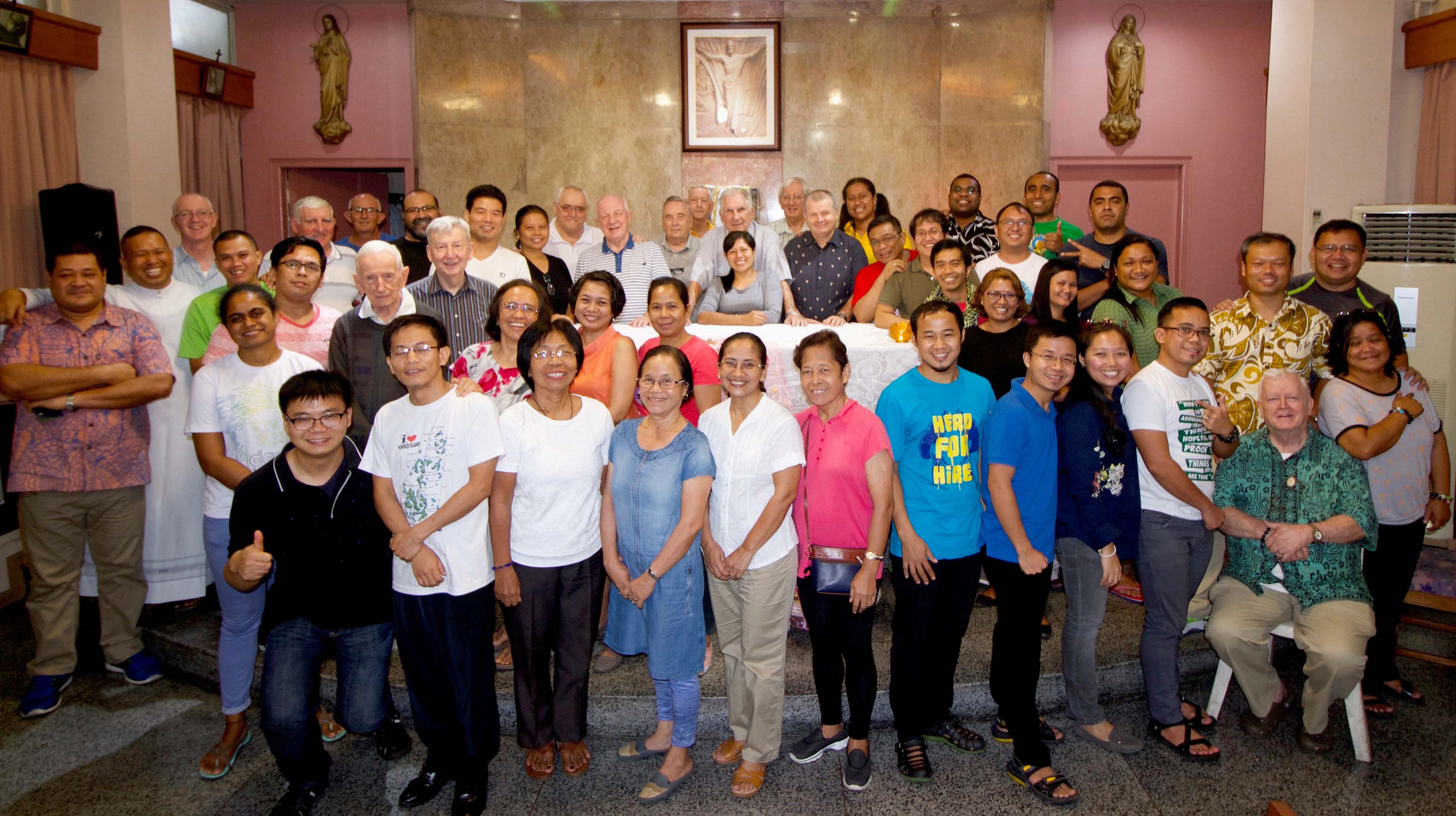 The Columbans – priests, lay, students and co-workers – during the Joint Area meeting in September 2017, Singalong, Manila. Fr. Felisiano is at the leftmost part in khaki pants & blue sneakers.