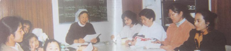 After a year and a half we transferred to another parish, Shiomi Church, but I still continue with my apostolate at Kasai Church with the Filipinos. Aside from Shiomi Church I also go to Umeda where there are two Masses in English every Sunday. I go to Umeda for the Sunday school of the children. Fr. Nicolas, S.J., the spiritual adviser of the El Shaddai, requested me to prepare the first communicants and we had our first group of communicants last Dec. 1, 1996. So one of my apostolates is the catechism of young children.