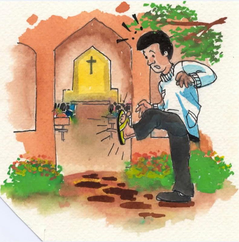 I was rushing for my catechism class in Akrobi village fearing that the catechumens might leave the church for it was getting too late in the evening. As I entered the church, I noticed my left foot was making noise while I walked but my right was not. To my horror, I saw my left foot was still wearing slippers! Thank goodness no one noticed it, O, holy night.