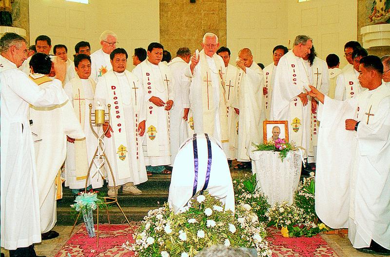 Fellow priest give their final blessing to Father Niall at his funeral Mass