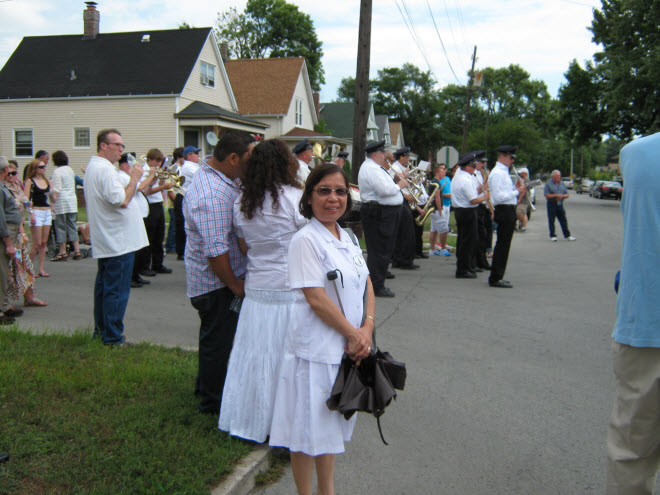 In the procession, the local band of Italians still play the traditional songs, for the younger generation, while the Latinos, try to learn other culture.