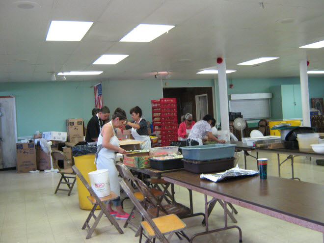 Italians in the kitchen the whole day, cooking pizzas for the feast of St. Donatus.